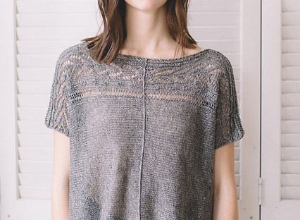 Lace garments are always fun, and they add a bit of interest to your summer tees and tanks. Bolan is a new pattern from Leila Raabe (Raabe also published Deschain, a very popular summer lace sweater from last year). Bolan is nothing but a boxy tee, except it does have a gorgeous lace motif across the the top of the front and back. Worked in a fingering weight yarn with a slightly open fabric, I think this project screams to be made in Shibui’s Reed. Fern would also work (I’ve seen examples of it knit in Fern on Ravelry) but I tend to prefer the drape that goes along with Reed. For those of you who love the ease of working with wool, pick a super wash like TML or La Jolla as these will also have a bit more drape.