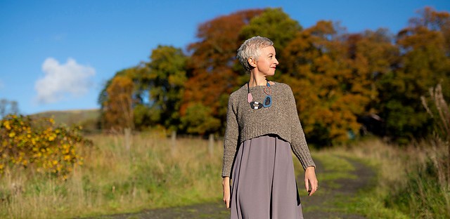 Doocot is a simple, top-down, seamless construction, and it’s going to be a great first-sweater for any aspiring sweater-knitter. It’ll be easy for anyone to modify it to lengthen it (she’s been going strong with the cropped look – but it’s not for everyone). Before I realized that this was a perfect project for Metal Tweed, I thought about knitting it in Arbor, Dromedary, Stargazer, or using a combination of Cima and Pebble (from Shibui).