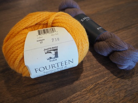 Juniper Moon Fourteen + Shibui’s Birch: I like the clean look of these two yarns and the subtle halo Birch will lend to the finished piece.  Fourteen is a very versatile yarn in that you can play with gauge a lot, and it can play its part as a worsted weight yarn very easily.  This is another super soft and refined version of this piece.  (Psst, you’ll need three skeins of Fourteen and two skeins of Birch)