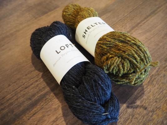 Brooklyn Tweed’s Shelter + Loft: I love these yarns and the tweedy, flecked look these yarns will give the piece.  It’ll be really warm, have a ton of body and get softer with time.  (You’ll need 3 skeins of Shelter and 2 skeins of Loft)