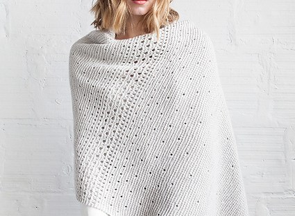 Andrea Mowry’s Yoga Shawl is another beautiful, big wrap.  A simple combination of knits and purls makes up its sophisticated chevron pattern.  Meanwhile, a long row of tiny buttons makes it so one can fasten it to be worn as a poncho.  I love the myriad of ways that Mowry wears this piece.  She wrote the pattern for Brooklyn Tweed’s Loft, but also consider Peerie, Birch, or even Fern or Cozette for some spring-weight pieces!