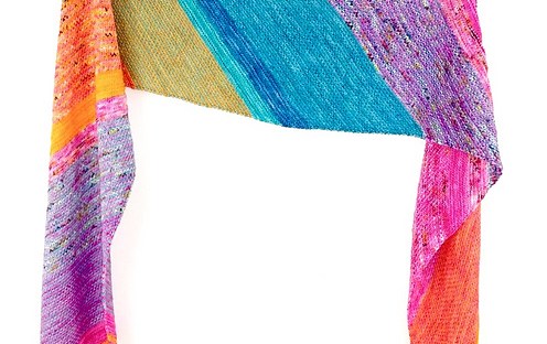 I’ve mentioned Paris by Day before, which mixes up 3 colors of La Jolla to make a big wrap or infinity scarf.  I also love Casapinka’s Mixology, which joyously combines five colors of La Jolla bias stripes.  They look amazing when gorgeous hand-dyed yarn is involved, but knitting this up is easy as pie.  In general, Casapinka expertly shows us how to mix up colors for maximum fun, so it’s worth checking out all of her patterns.  Check out her new-ish pattern called Botanique which is begging for some daring color choices. She has also started a KAL for her new project Magical Thinking.  Please note, it is NOT A PONCHO and if you have any sense of humor, please check out the pattern’s project page.  If nothing else, you’ll appreciate Casapinka’s funny streak.   Click here to check out all of her patterns on Ravelry.