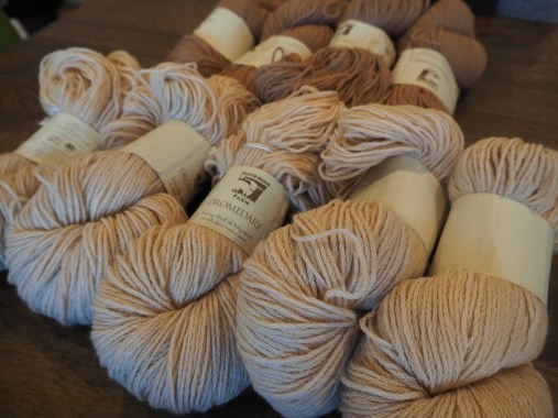 Dromedary is a really wonderful yarn – a blend of camel and merino. It is soft and light with a hint of drape. We have two colors remaining: cream and camel. Both of these colors lend themselves nicely to McFadden’s aesthetic and styling. Dromedary would be perfect for patterns like Only Ocean, a large lace shawl with a wave-motif, or The Rain Outside (the DK-weight shawl with the lace short-rows). Depending on how you decide to knit either of these up, you’ll need 3 to 4 skeins of each. Each skein of Dromedary is a whopping 290 yards, and at 50% off they are $13 each, and that sounds like a pretty amazing deal to me!