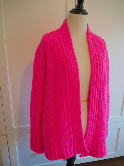 Once I tried it on I’d decided my next project then and there. The Rhinebeck Sweater was soft and light, with an open neckline and a soft drape that started at the neck and carried all the way down. I picked up six skeins in bubble gum picked and cast on the following Monday.