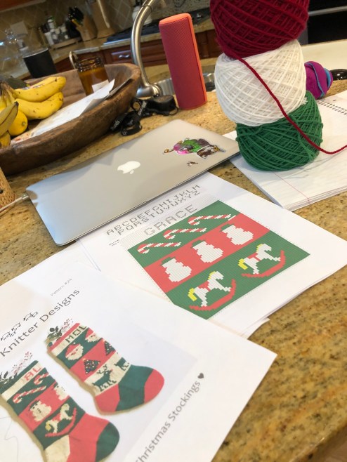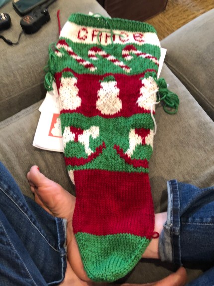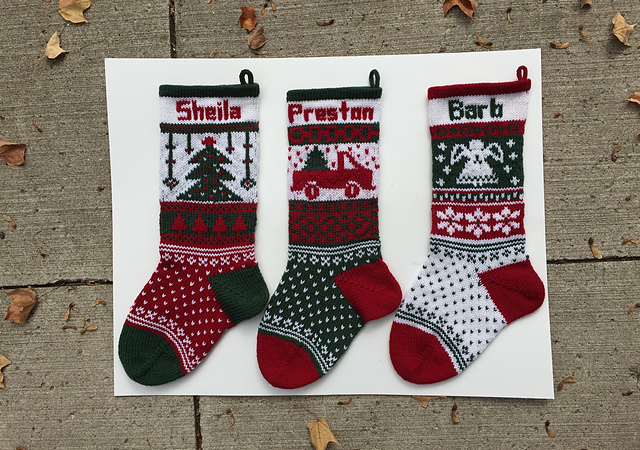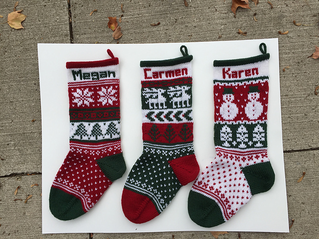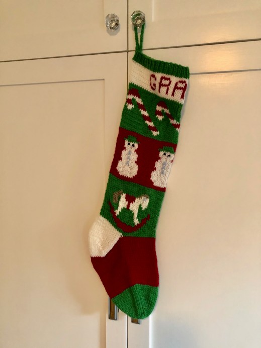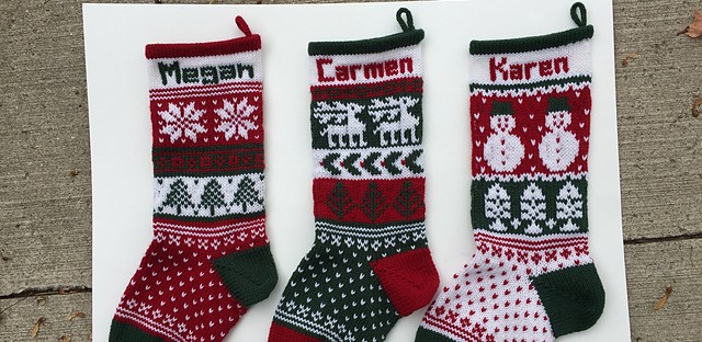 In my family we had a different tradition, with my grandmother hand-knitting stockings for all of my siblings, our significant others and my children. Before her knitting career ended (she’s still kickin’ at 98 years old) she made a number of extra stockings which I could personalize with names via a duplicate stitch. Needless to say, I’ve never had a need to knit a Christmas stocking myself.