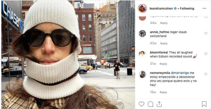 Leandra Cohen makes balaclavas cool for the rest of us. Thank you Ms. Cohen.